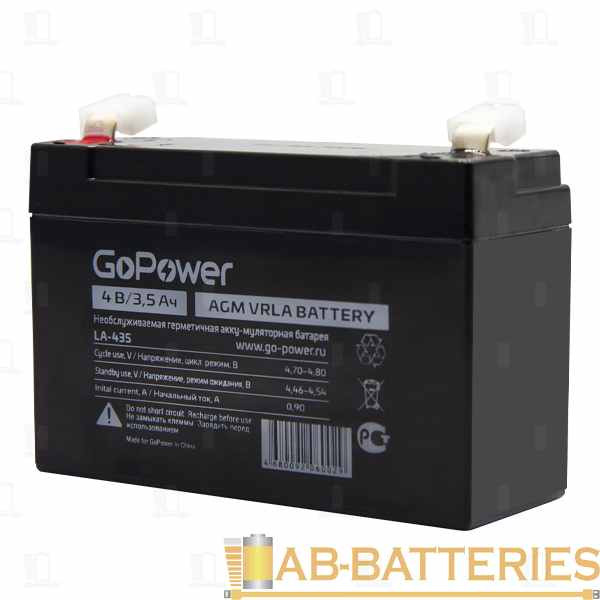 Аккумулятор свинцово-кислотный GoPower LA-435 4V 3.5Ah